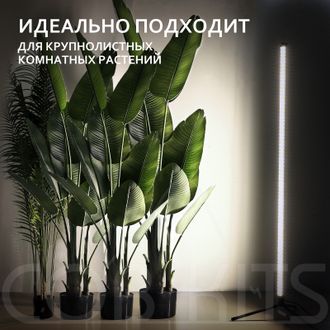 Фитолампа полного спектра белого свечения с добавлением красного спектра 660nm . Светильник имеет высокую цветопередачу Ra 86, что позволяет вам видеть идеальные цвета всего, что попадает под его свечение. Лампа комплектуется удобным выключателем под ногу. Размер источника света 150см + подставка 12см. Светильник так же можно использовать в интерьере, как источник света и элегантную часть интерьера.